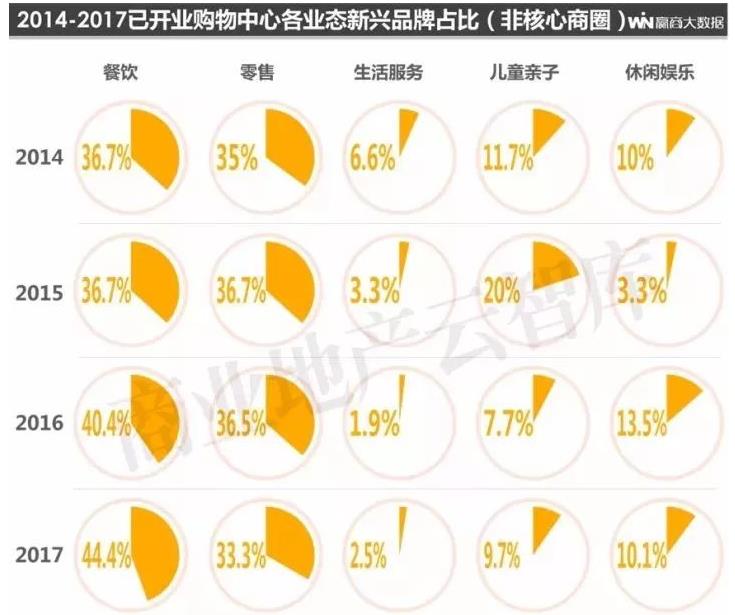 ÔÚ2017ÄêпªÒµ¹ºÎïÖÐÐÄÖУ¬£¬£¬£¬£¬£¬ÕûÌåҵ̬ռ±ÈΪ£ºÁãÊÛ52.2%¡¢²ÍÒû28.2%¡¢¶ùͯÇ××Ó11%¡¢ÉúÑÄ·þÎñ5.8%¡¢ÐÝÏÐÓéÀÖ2.8%£»£»£»£»£»£»£»¸÷ҵ̬½ø×¤µÄÐÂÐËÆ·ÅÆÕ¼±ÈΪ£º²ÍÒû46.7%¡¢ÁãÊÛ36.4%¡¢¶ùͯÇ××Ó6.7%¡¢ÉúÑÄ·þÎñ7.3%¡¢ÐÝÏÐÓéÀÖ3%¡£¡£¡£¡£¡£