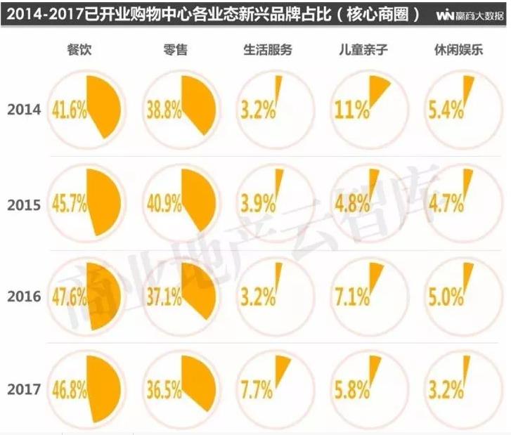 ÔÚ2017ÄêпªÒµ¹ºÎïÖÐÐÄÖУ¬£¬£¬£¬£¬£¬ÕûÌåҵ̬ռ±ÈΪ£ºÁãÊÛ52.2%¡¢²ÍÒû28.2%¡¢¶ùͯÇ××Ó11%¡¢ÉúÑÄ·þÎñ5.8%¡¢ÐÝÏÐÓéÀÖ2.8%£»£»£»£»£»£»£»¸÷ҵ̬½ø×¤µÄÐÂÐËÆ·ÅÆÕ¼±ÈΪ£º²ÍÒû46.7%¡¢ÁãÊÛ36.4%¡¢¶ùͯÇ××Ó6.7%¡¢ÉúÑÄ·þÎñ7.3%¡¢ÐÝÏÐÓéÀÖ3%¡£¡£¡£¡£¡£